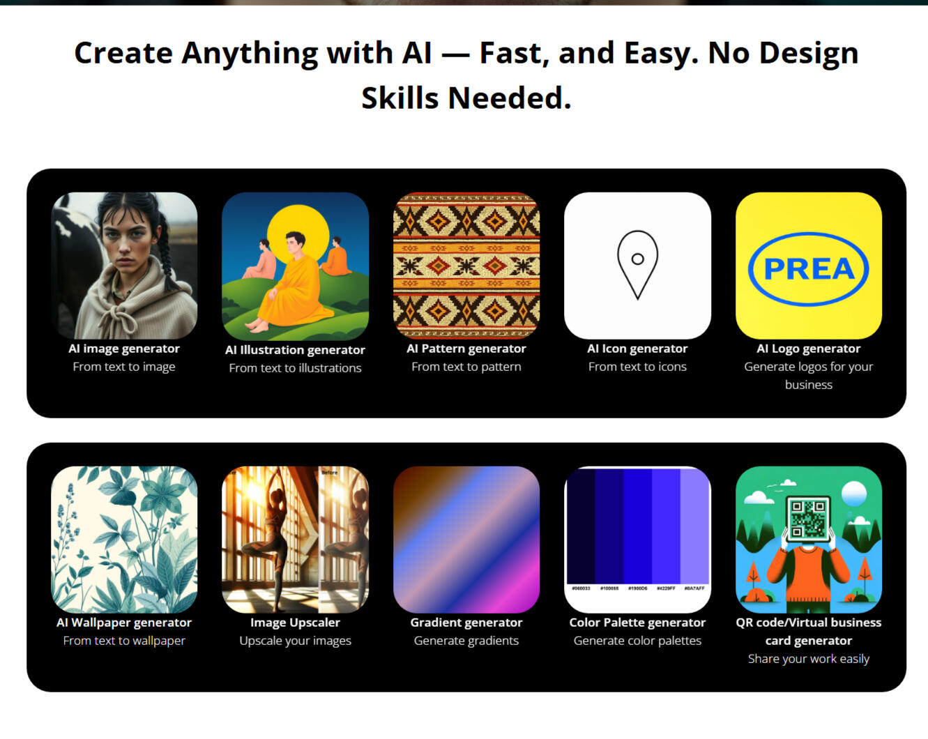 You can make everything from product visuals to brand kits:• Logos, icons, illustrations